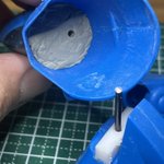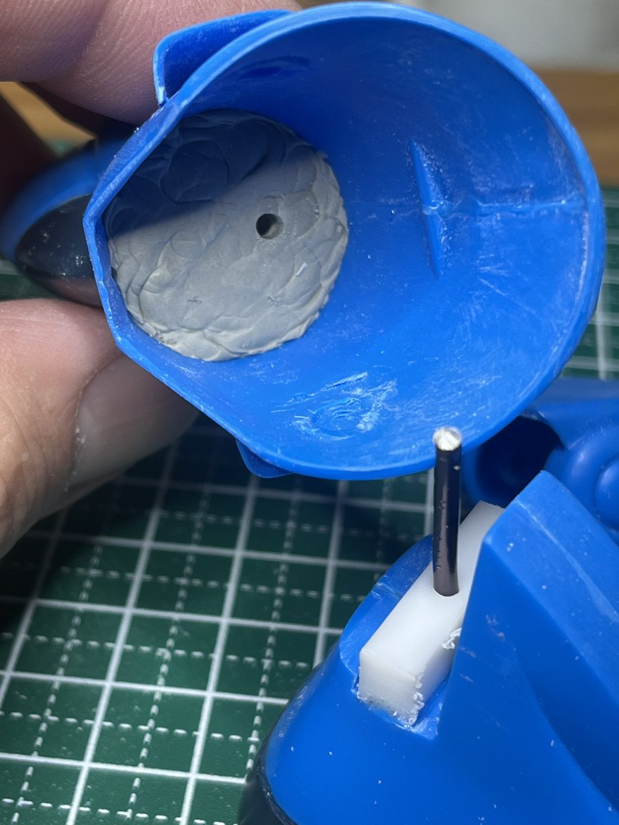 マシーネンを筆塗りするんですが‥どーもボディーが塗りにくいと思っておりました。そこで台座+持ち手になる物を作れば良いのでは?と思い、接着剤の空き瓶にパテを詰めてプラ棒を固定して作ってみました♪傾けても動かないし瓶の重さで置いても安定する。良い感じです♪ #マシーネンクリーガー