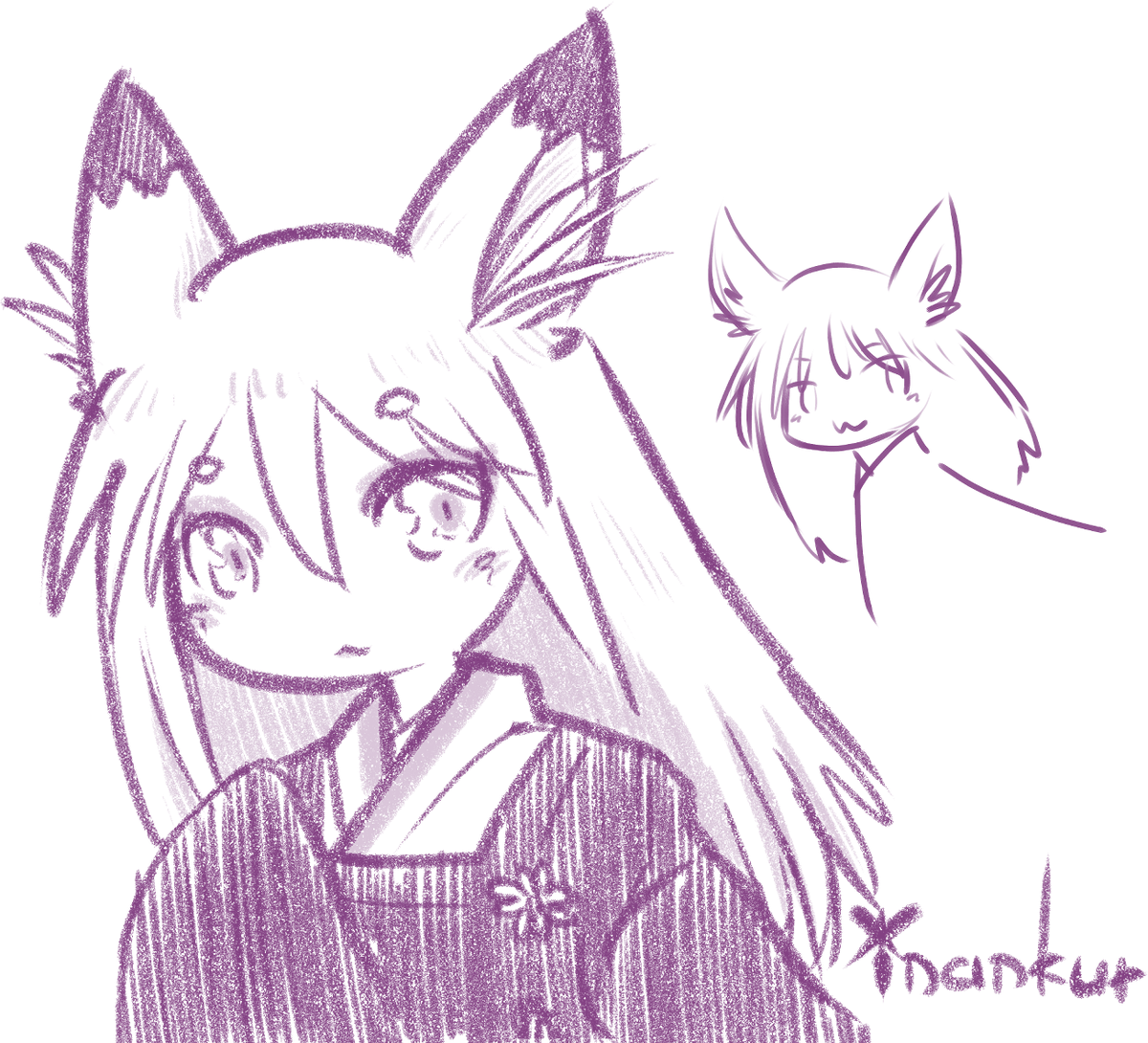 即興描き 狐娘 昔のrkgk(右図)をみつけたのでリファインしました()