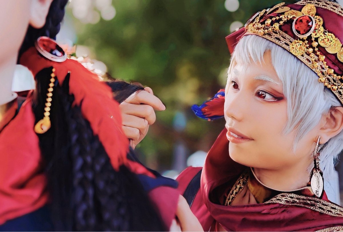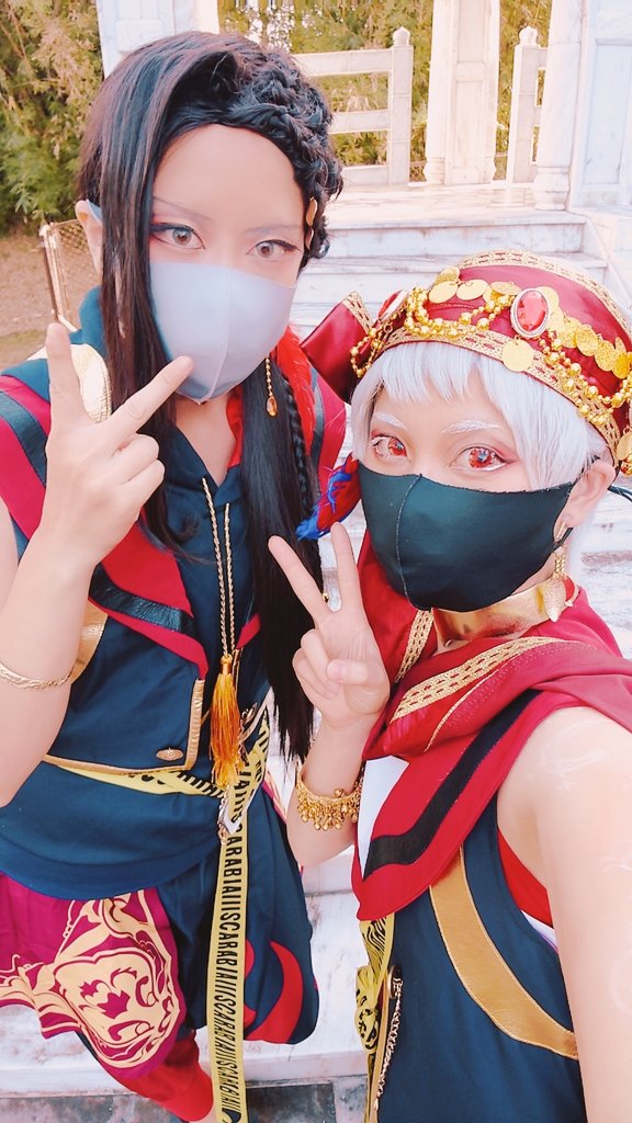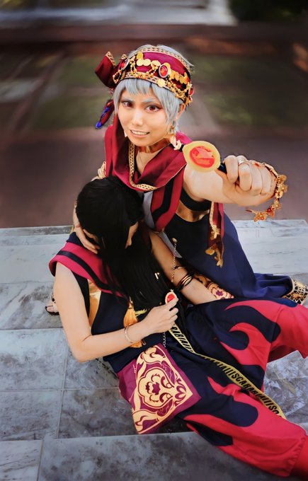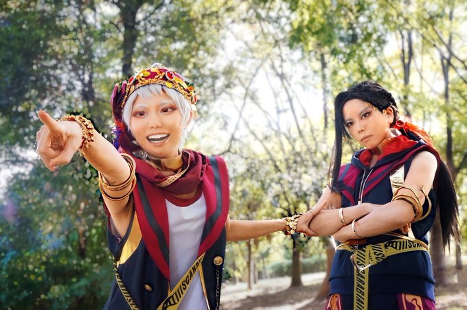 【コスプレ注意】 ジャミル、お前は絶対にオレを裏切ったりしない。だってオレたち…親友だろ? 当たり前だ。そんな恐ろしいこと考えたこともないよ。 ジャミル…たまもち 📷…聖 カリム…鸚撫乃 #twstレイヤーさんと繋がりたい #コスプレイヤーさんと繋がりたい #相互さんの相互さんと繋がりたい