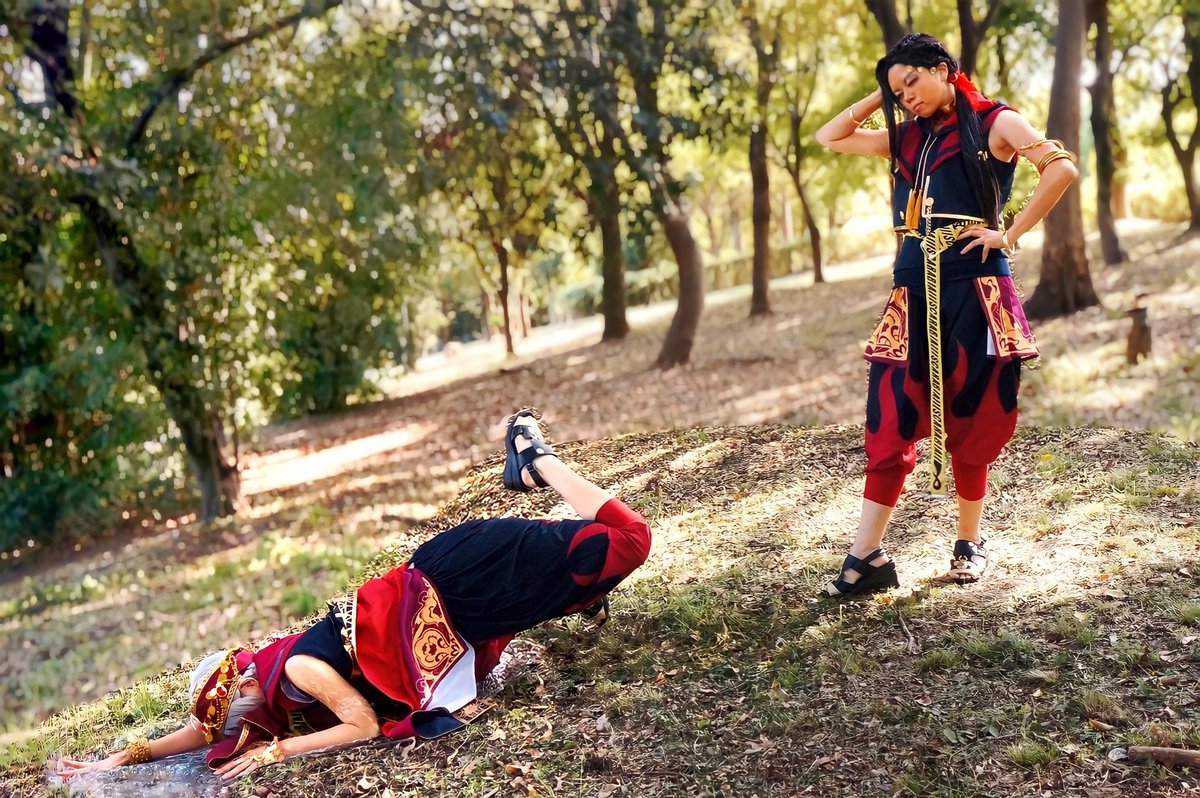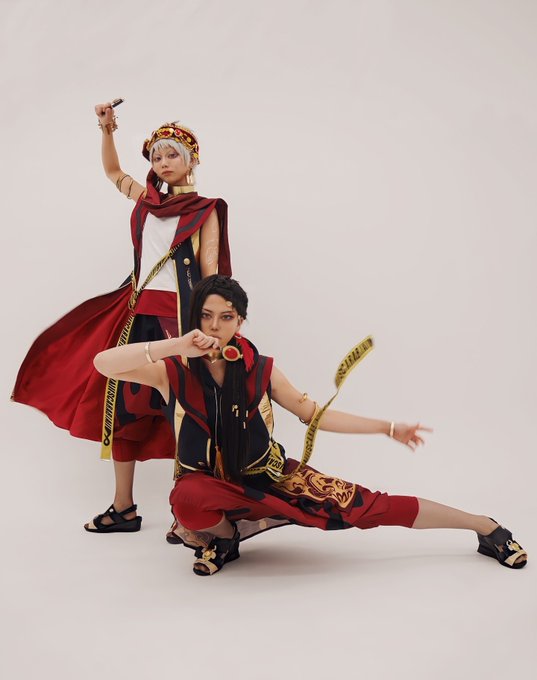 【コスプレ注意】 「おっ!あっちに行ってみようぜっ!」 「なっ…!まて、カリムッ!」 久しぶりの🌙スカラビア☀️楽しかった😆❤ 転び体勢が長丁場でおしり筋肉痛になった😂笑 ジャミル…たまもち #twstレイヤーさんと繋がりたい #コスプレイヤーさんと繋がりたい #ツイステ好きさんと繋がりたい