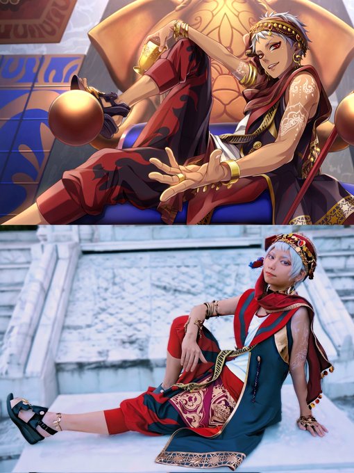 【twst コスプレ注意】 スカラビアはハピスカはもちろん、不穏な雰囲気も美味しくてたまらん🤤💕 主人or従者が刺客に傷つけられた時、2人はどうするのかなぁ… 🐍は‘怒’のイメージ強いけどカリムは怒り,焦り,涙,無表情…全て想像できて難しい… ジャミル…たまもち #コスプレイヤーさんと繋がりたい