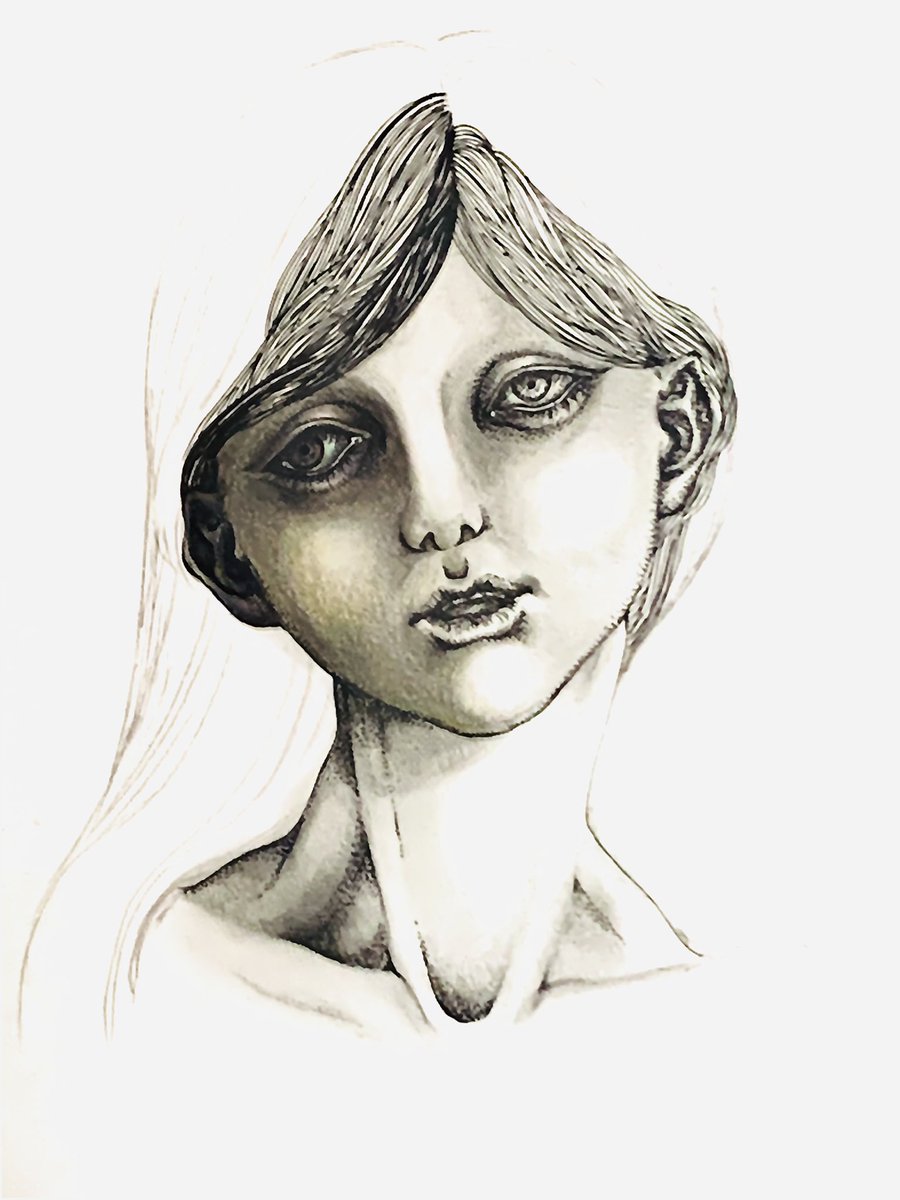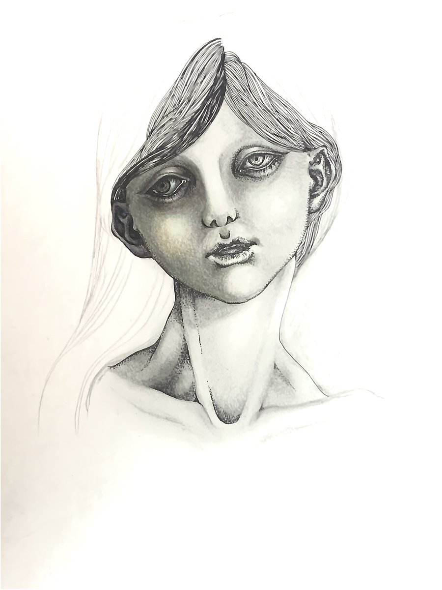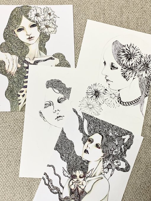 0 3 #ペン画 ちょっと続き描いた。 髪の毛増やして花も描きたい。 21/10/07 01:02