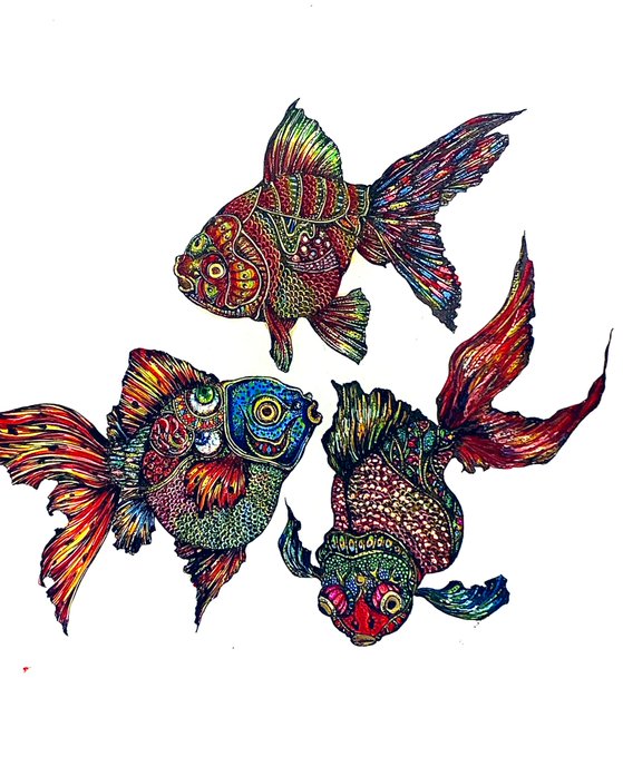 1 20 #ペン画 #イラスト #金魚 仲間が増えた。 22/03/22 22:47