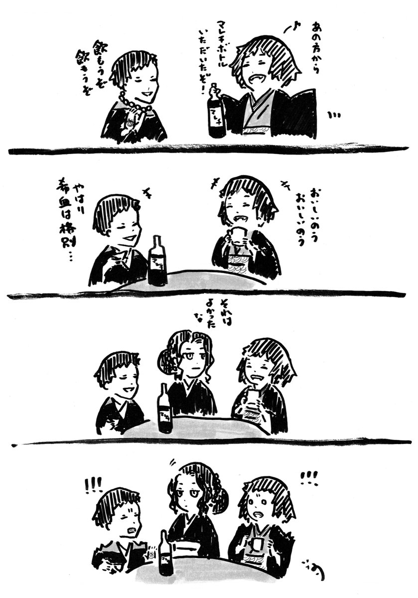 5 69 #鬼さん深夜の60分一本勝負 @oni1draw1write お題【酒杯】【酔う】 矢琶羽さんと朱紗丸ちゃん 酔いも醒める"げすと" 20/07/17 20:46