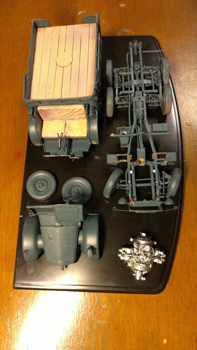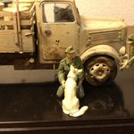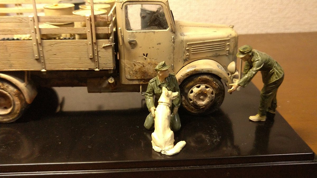 #今月作ったプラモ晒そうぜ ICM製のKHDs3000トラック1つだけです、タミヤのフンメルに付いてたフィギュアとリッチモデルのワンちゃんがあまりにフィットしたのでいつかコラボさせたい(≧ω≦。)