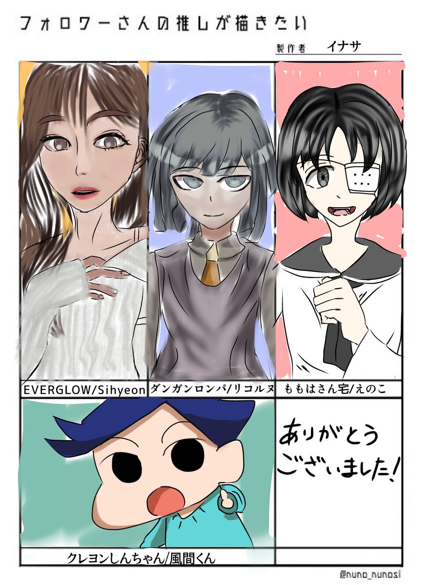 @LAWiNE_urielsub @Chichikotyan @byarom_S @momoha0225manga #フォロワーさんの推しが描きたい 下手ながら描かせていただきました!実写やデフォキャラは初挑戦です。 アカウントを削除された方は見ることが出来なかったので描けませんでした。すみません!