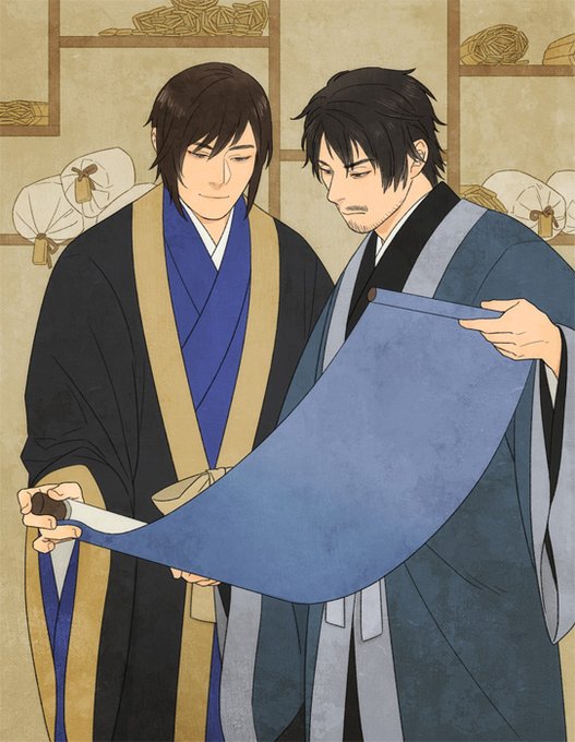 リクエスト:荀彧と荀攸 平服の襟が金銀で素敵ですね