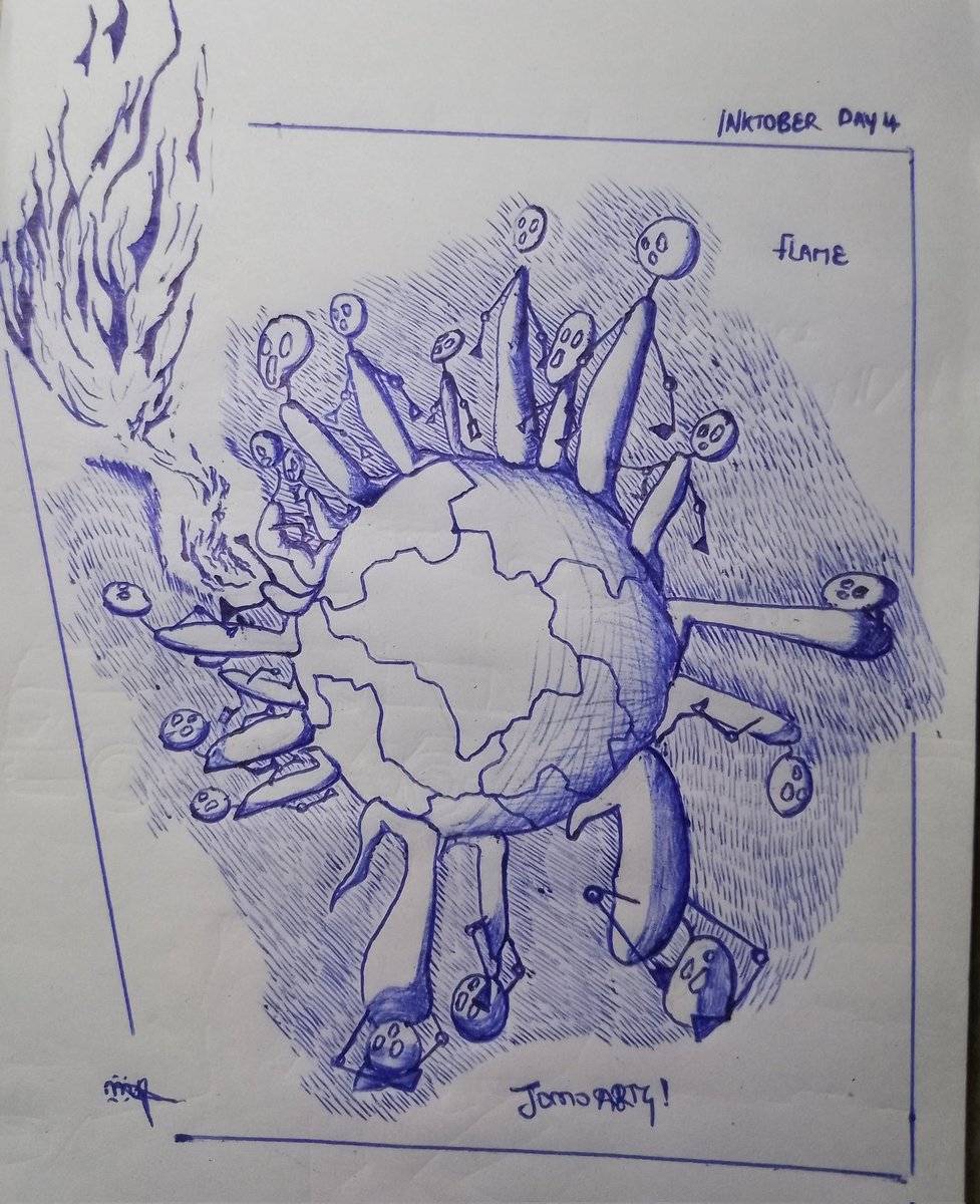 Flame🖌️... 😖 Drawing with a pen felt alien👽 Day 5🖌️ Quote Of The Day: >>> Never judge the flame untill you know its origin (jomo) . . . #inktober2022 #flame #inktober2022day5 #inktoberflame