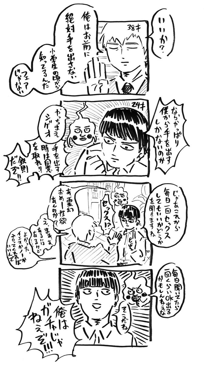 728 3495 霊幻(38)がモブくん(24)に迫られている4コマ。モブ霊でも霊モブでも構わない 19/03/20 01:39