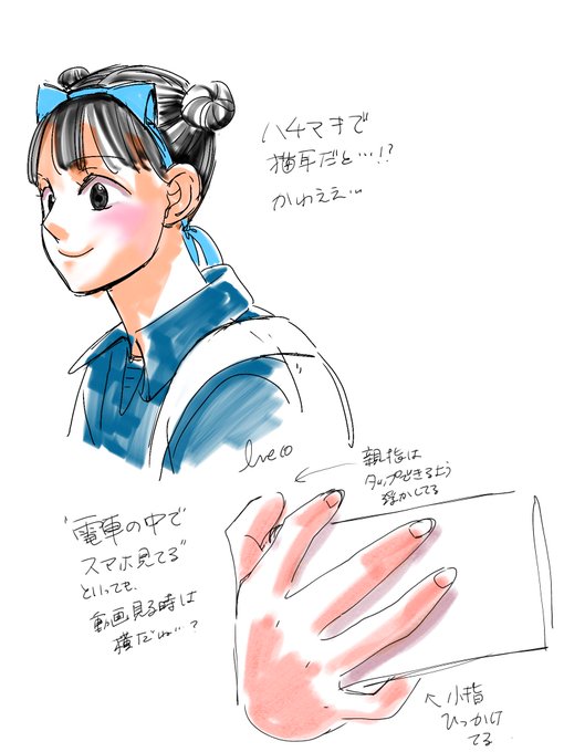 #ふくろうセミナー #カフェスケッチ #アイビスペイント 街中で見かけたものメモ ●運動会帰り?友達と3人くらい、猫耳ハチマキで歩いてた子 ●電車の中で動画見てる子ってスマホ横持ちだね