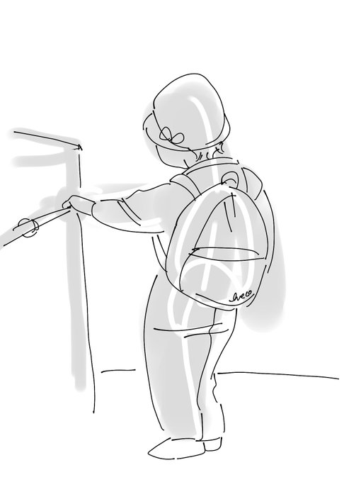 #ふくろうセミナー #カフェスケッチ #アイビスペイント 電車待ち。どうしたの?あんよ疲れてたの?