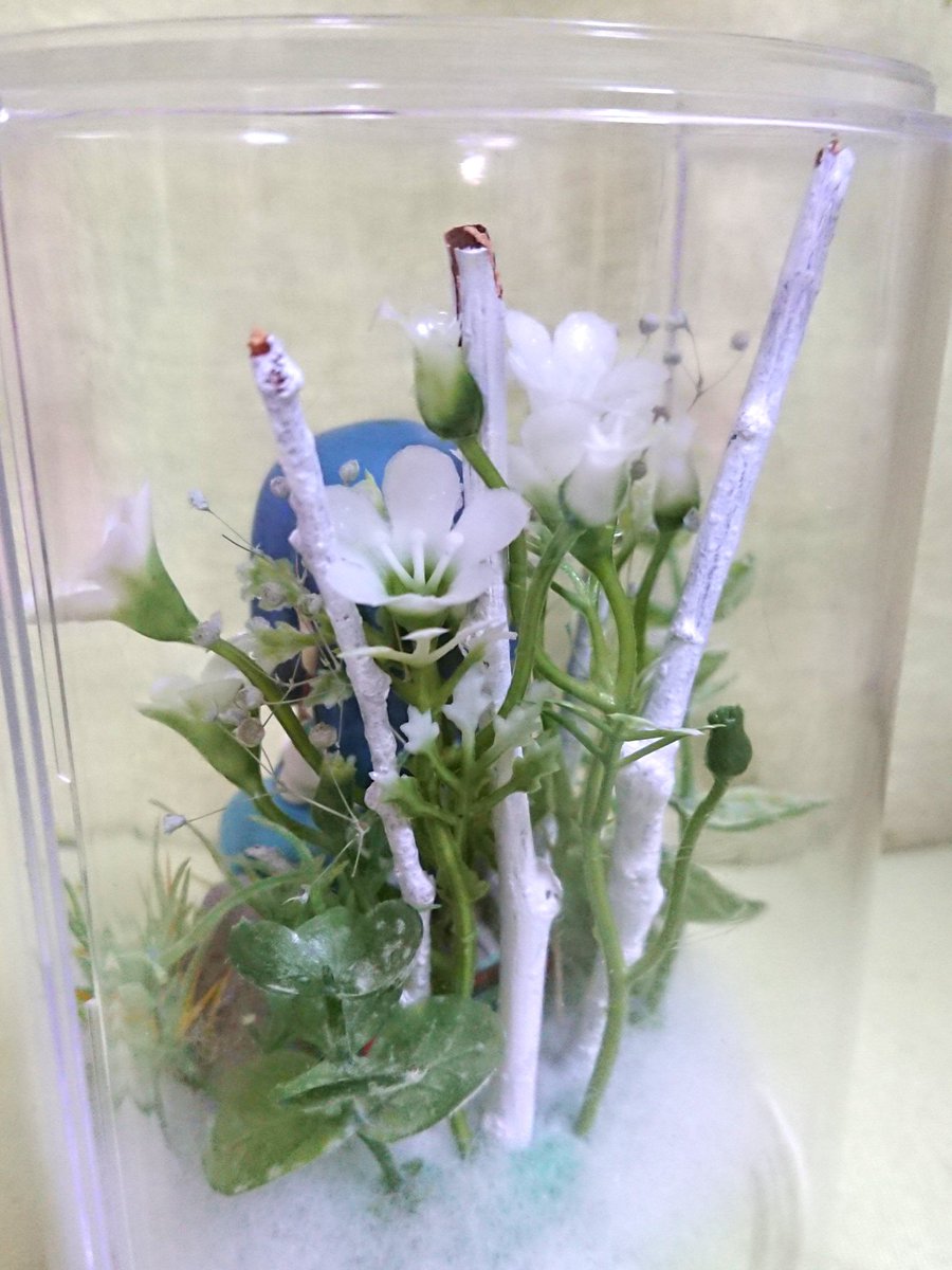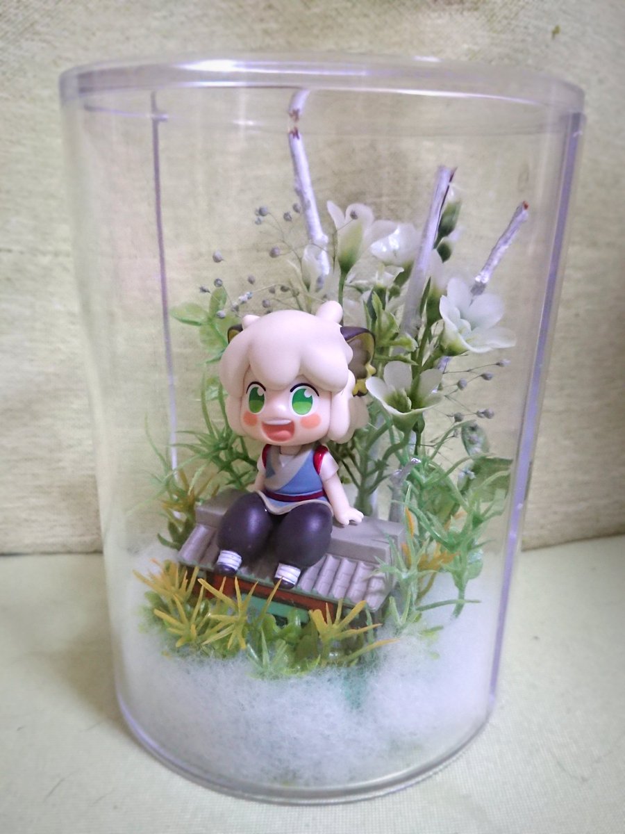 屋根付きフィギュアの個室作ったどー! 数ヶ月前に白く塗った枝をやっと使った😂 前作ったやつと材料一緒だから似たような雰囲気に…冒険出来ない😩 苦肉の策で綿使ったけど小さい島っぽくなってよかったかも? 気分によって入れ替え可✨ アップで撮るのに向いている背景かもしれぬ…。 #羅小黒手芸部 twitter.com/ineine04050610…