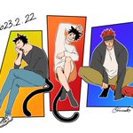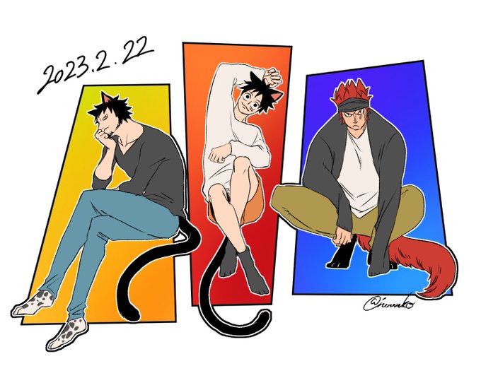 30 222 久しぶり3🏴☠️長楽描き 🌷がくつろいでるところに👒が乗ってきて🐯が落ちてきて🌷が考えるのを放棄した図 23/01/10 23:54