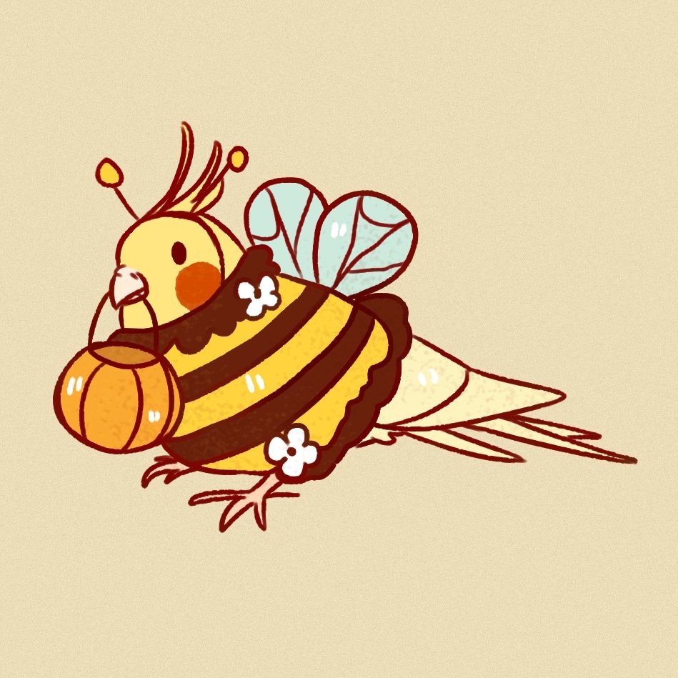 This Cockatiel dressed up as a little bee for the Halloween party and is looking for some treats 🎃 you'll be meeting him on my Sh0p Update next Saturday, October 1st at 6:00 PM (WEST) 🍂👻 #autumn #illustration #kidlitart