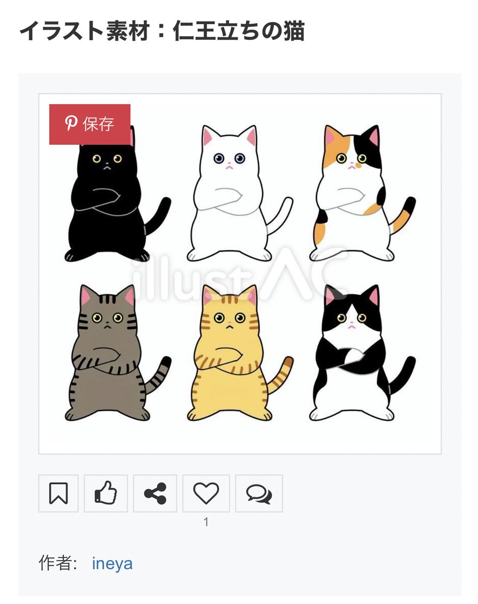 2 1 【お知らせ】仁王立ちの猫 ac-illust.com/main/detail.ph… イラストACさんで無料素材公開しています。よろしくお願い致します🙌 #イラストAC 22/06/29 08:48
