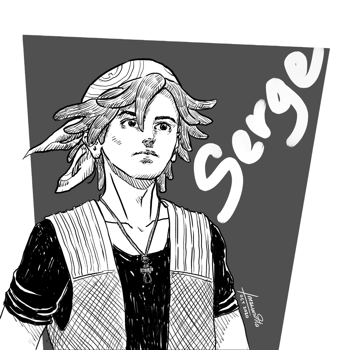 #inktober Day 4: #serge from #chronocross Chrono Cross is one of the most beautiful PS1 game, in my opinion... Everything about it was beautifully done, and I enjoyed staring at the characters' thumbnail art so much, I think it influenced my drawings. #inktober2020