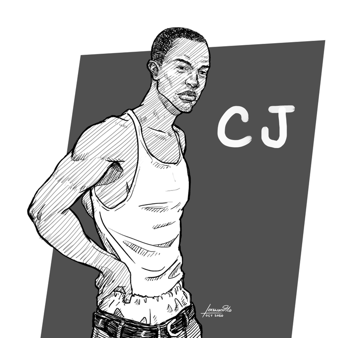 #inktober Day 11: #carlcjjohnson from #gtasanandreas! Technically, it was my brother's game that I often borrowed just to go explore and do some crazy stunts in Los Santos. #inktober2020
