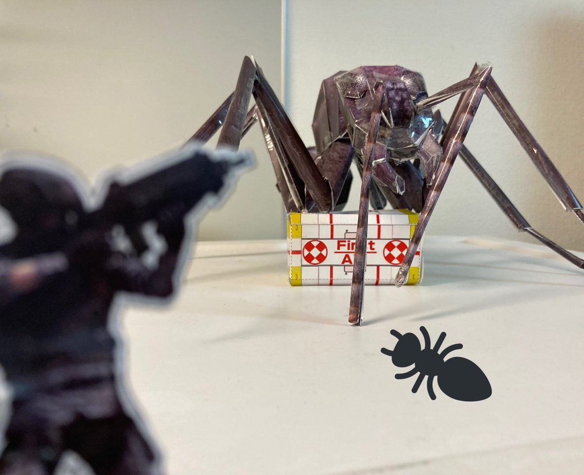 ようやく完成した🐜顎とかいろいろ糊が上手く付かなくてテープで手抜きしたので見栄えはイマイチかも。ペーパークラフト難しいな #EDF6 #ペーパークラフト