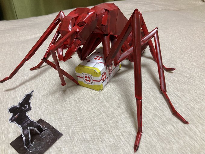 0 7 ようやく完成した🐜顎とかいろいろ糊が上手く付かなくてテープで手抜きしたので見栄えはイマイチかも。ペーパークラフト難しいな #EDF6 #ペーパークラフト 22/01/19 18:44