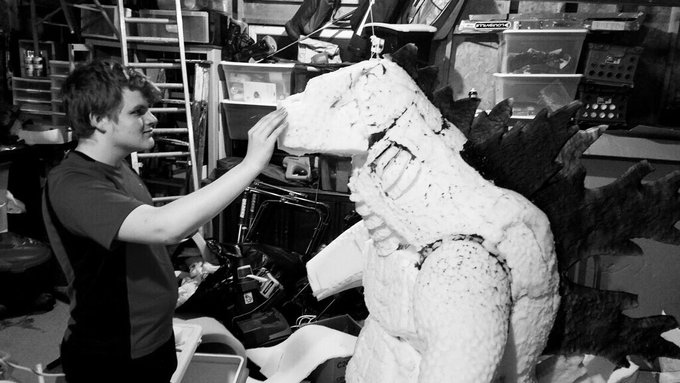 Doing some bench presses rn. Looking at my main inspiration for getting gains. #bodybuilding #workout #workoutmotivation #Godzilla #cosplay #cosplaylife #ゴジラ #コスプレ