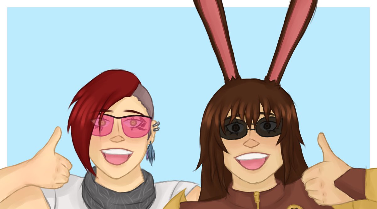 the key to gay/lesbian solidarity is stealing your bf's/gf's sunglasses!! just trust me guys #scarletdavid #velvetscarlatina #rwby #fanart #rwbyfanart #pinkspyglass #lostboys #crosshares