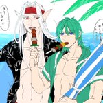 #勇ピサ版ワンドロライ @heropissarro1h 「海」「装い」夏だ~~~~~海だ~~~~~🏖🌴 時間が守れないので普通にかいてしまいましたすいません