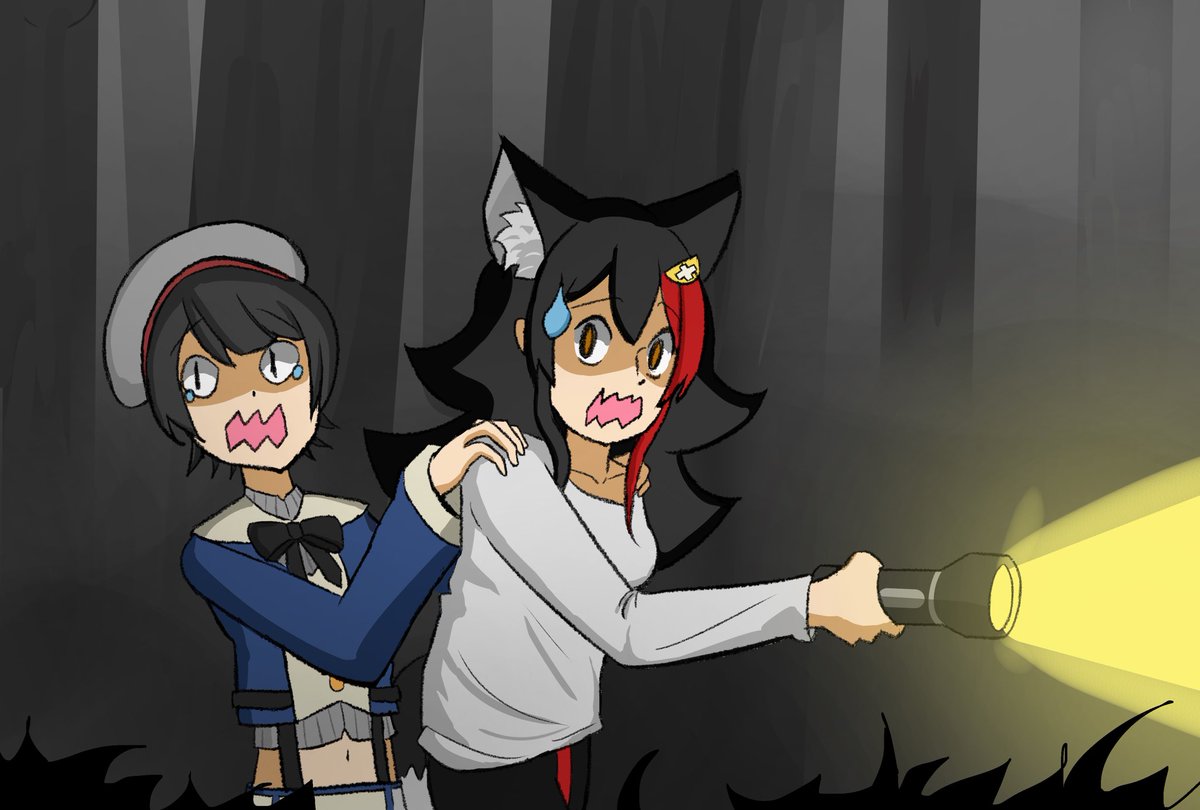 スバミオの幽霊捜索🐺🦆 #みおーん絵 #プロテインザスバル #ホロ怖