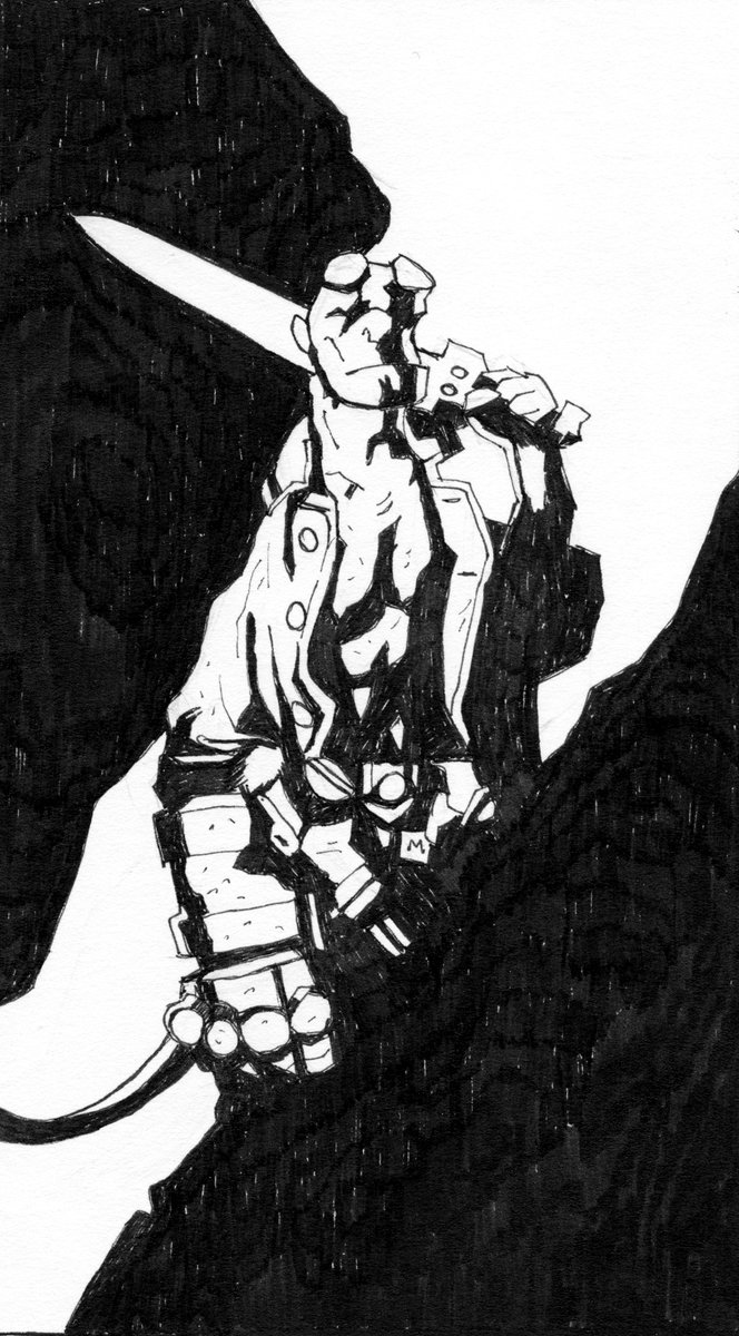 Coming out of the semester finals and trying to get back in the groove of posting art again. So here's a master copy of #MikeMignola art I did for class. I love his art. #Hellboy #Inktober