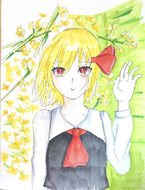 #東方project (春じゃないけど)リリーホワイト描きました! コピック使ってイラスト描いたのは初めてなので、相当体力使いました… コピックはちゃんと高い方を買った方がいいかな?色分けが難しかった