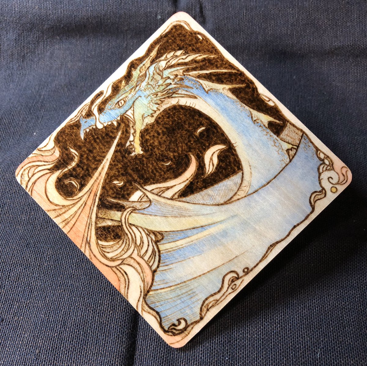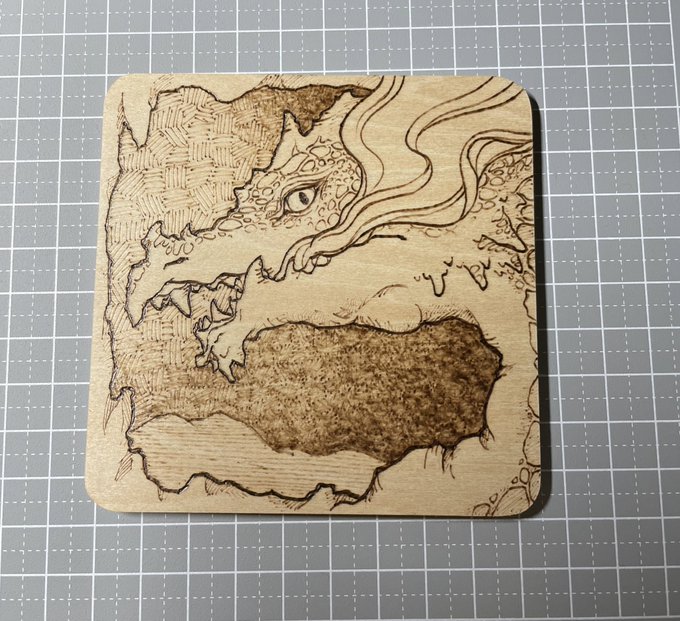 ドラゴンゴンのウッドバーニングも制作中だけど、ファンタジー系のイベント予定がないからなぁ…多分通販か…わからん。 神様展は今回やるのかなどうしようかな #ウッドバーニング #焼き絵