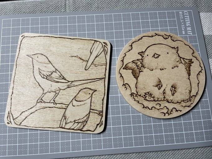 どこに出すかは決めてないけどとりあえず作ってるオナガ&もふもふグリフォン #ウッドバーニング #焼き絵