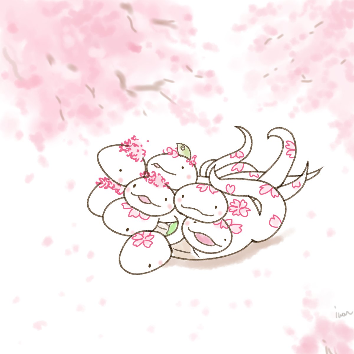 桜でおめかし さくらにょろち 「桜きれいにょー」
