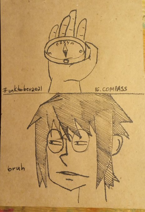 16. Compass/компас Мне не нравится эта тема и по-хорошему, я б ее пропустил. Но решил нарисовать Бомбу-тян. Такие дела. #inktober2021 #inktober #iichan