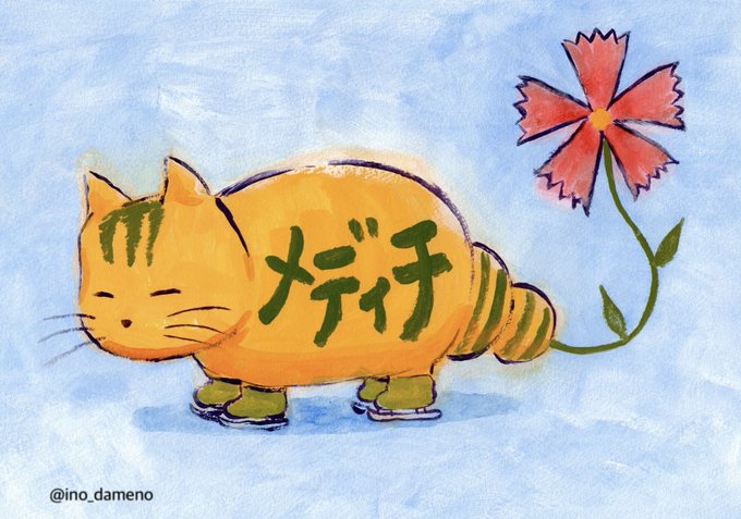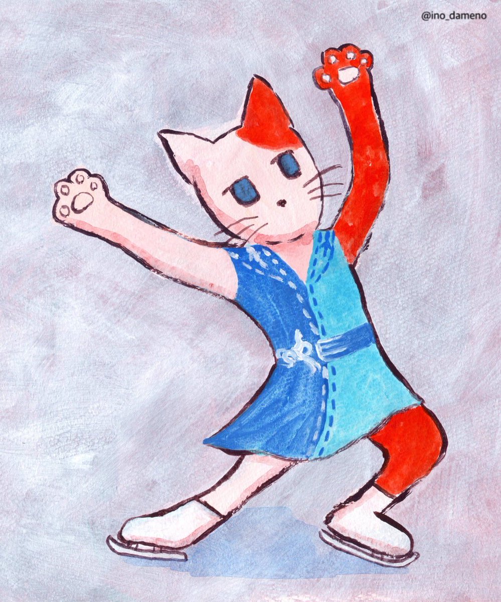 グループ展「ヒビヒツヒツ12」愛知県のギャルリーくさ笛にて2/6(月)まで開催中です!イナバウアーして入場しよう🛼 #おはなねこメディチ #絵画 #イラスト #絵本 #art #illustration #猫