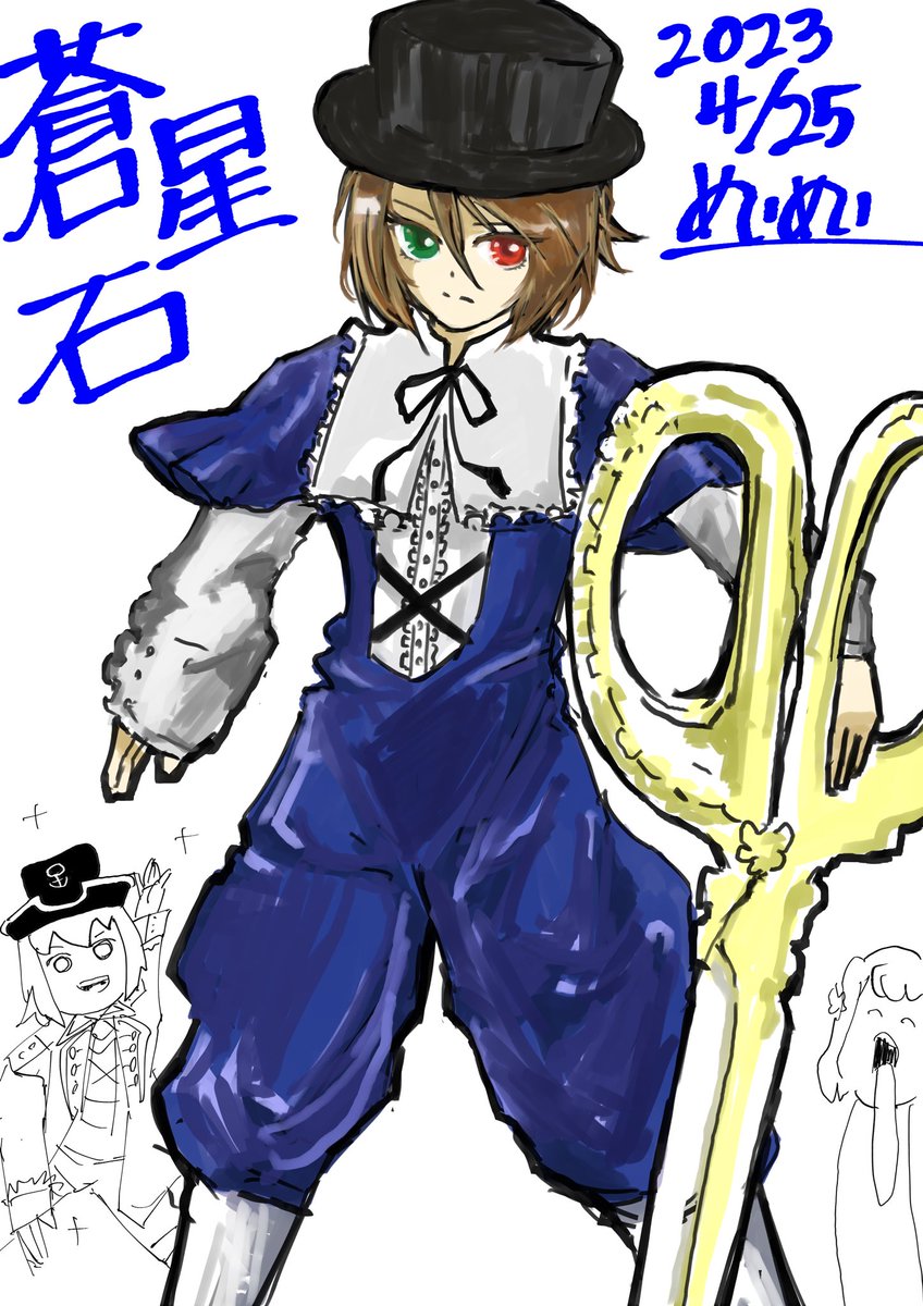 12 23 かなりあっさりしてるけど 全身立ち絵描きました。 これが現在のデフォルト命命です。 #めいめいあーと 21/05/19 22:52