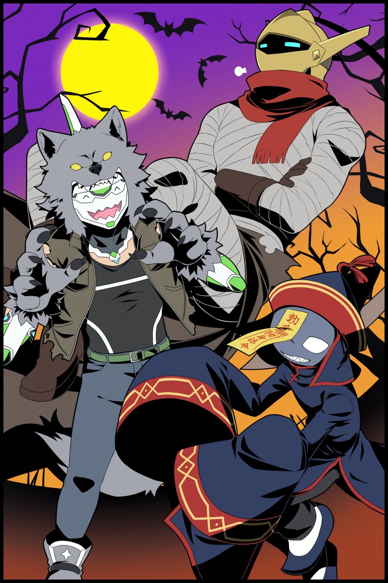 ハロウィンなおれら 手前から 式サメ【@inodogs】 るふくん【@musou_luf 】 ピカさん【@Kpikkar 】