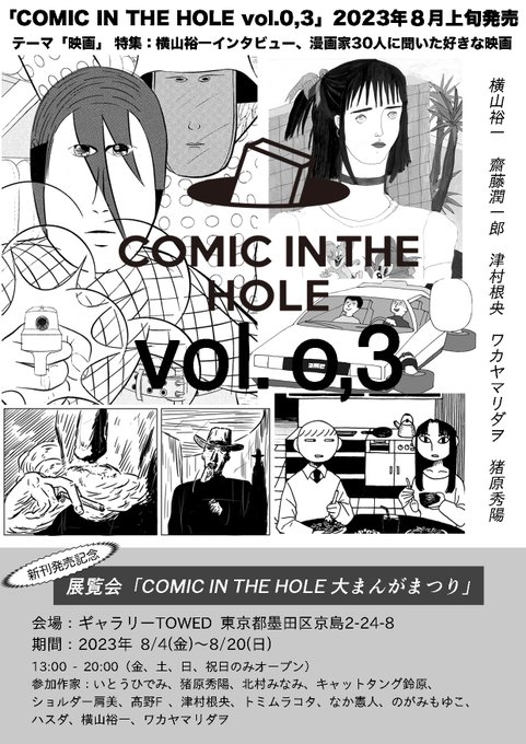 雑誌「COMIC IN THE HOLE vol.0,2」が本日より予約開始です! 1月25日(水)発売。テーマ「1300年」、B5サイズ、106ページ、¥1,650(税込)。comic-hole.stores.jp/items/63bf6e3b… 特集としまして漫画家・加藤伸吉氏の新作漫画、インタビューなどを掲載します。