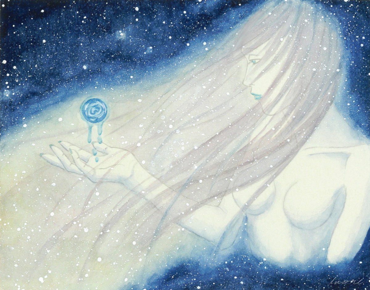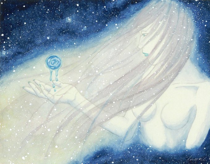 「星の契り」 7月最初の作品🎋 天女です。 七夕に因んだ雰囲気で描いてみました🌌 #水彩画 #アナログ絵 #絵描きさんと繋がりたい #芸術の輪 #みんなで楽しむTwitter展覧会 #artwork #七夕