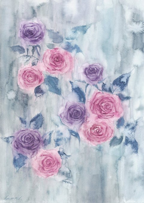 「薔薇 Ⅱ」 文化展に向けて、薔薇を描く練習をしている過程で生まれた絵です🌹 #水彩画 #アナログ絵 #絵描きさんと繋がりたい #芸術の輪 #みんなで楽しむTwitter展覧会 #artwork #薔薇