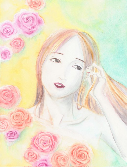 「薔薇 Ⅲ」 こちらは、フラワーデザイン作品の一部として、以前に発表した絵なのですが、絵単体としてもお気に入りなので、投稿することにしました🌹 #水彩画 #透明水彩 #アナログ絵 #絵描きさんと繋がりたい #芸術の輪 #みんなで楽しむTwitter展覧会 #analogart #薔薇