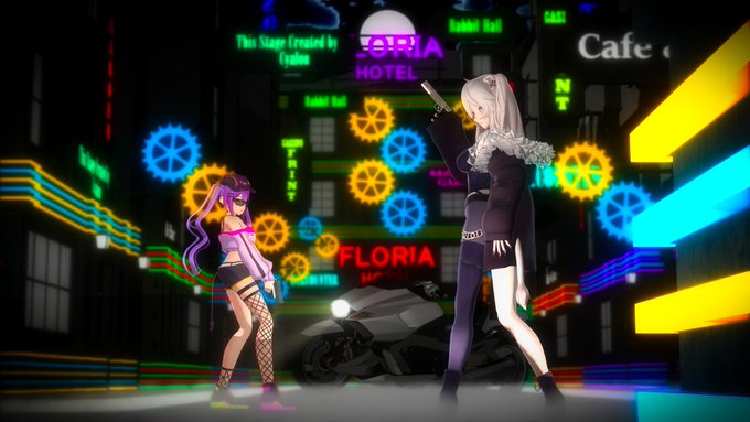 サイバーパンク風なししろん&トワ様。 この2人ならいい感じのバディになりそう。 #ししらーと #TOWART #MMD #ホロライブMMD © 2016 cover corp.