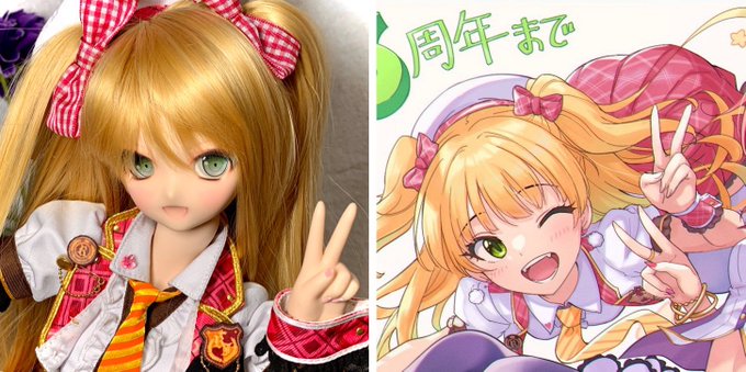 2 8 6周年莉嘉ちゃんが可愛すぎたので雑だけどツインテ&リボンで6周年仕様にしました リボン自作ですがデカかったので今度作り直します あと同じ柄が見つからないw #デレマスドール部 #城ヶ崎莉嘉 21/09/05 20:15