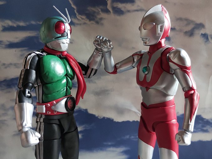 #夜のフィギュア撮影会 テーマ「続」 両方とも50年以上続く作品達。 #ウルトラマン #仮面ライダー