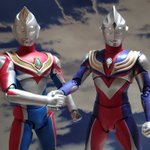 0 8 #夜のフィギュア撮影会 テーマ「フリー」 時代を超え繋がれたウルトラの絆 #ウルトラマン #ウルトラマンティガ #ウルトラマンタイガ 23/07/08 21:03