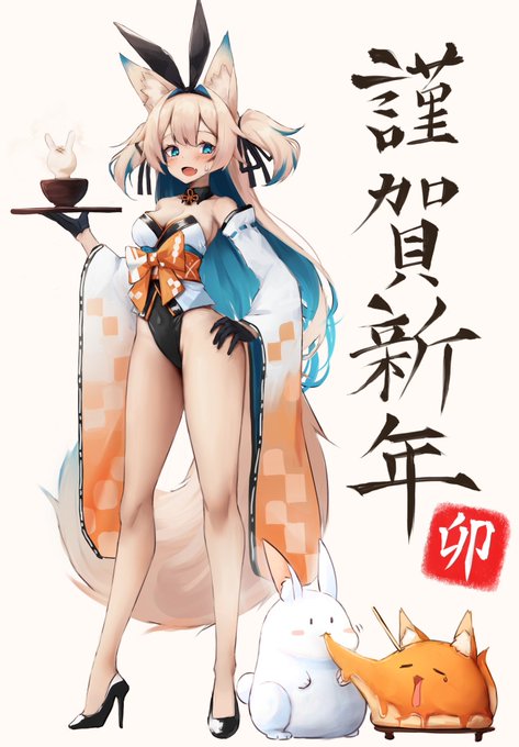 191 975 書き初め🦊🐰🍡 改めて今年もよろしくお願いします🎍 23/01/03 12:03
