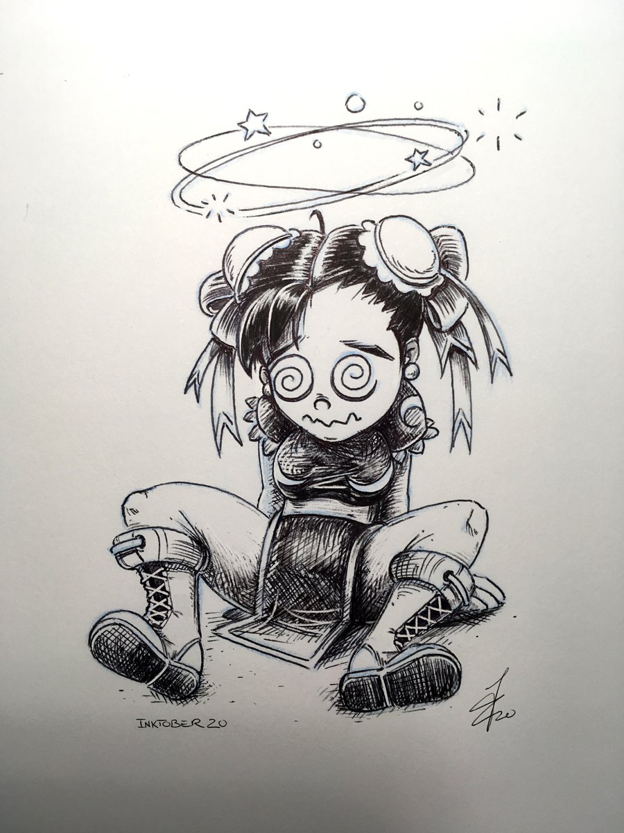 They don’t show you this but it’s basically what happens when you do too many spinning bird kicks in a row! #inktober2020 #inktober #dizzy #inktoberday19 #chibiart #streetfighter #chunli