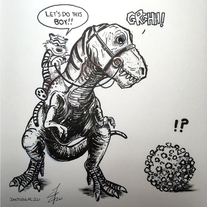 Personal short term hopes 🧐 Hopefully we’ll beat this pandemic in no time! 2020 can still be the year we get a new #calvinandhobbes comic strip 🤞*Did my best to emulate #billwatterson style. We’ll get through this soon #staysafe 😷 #inktober2020 #inktober #hope #inktoberday10