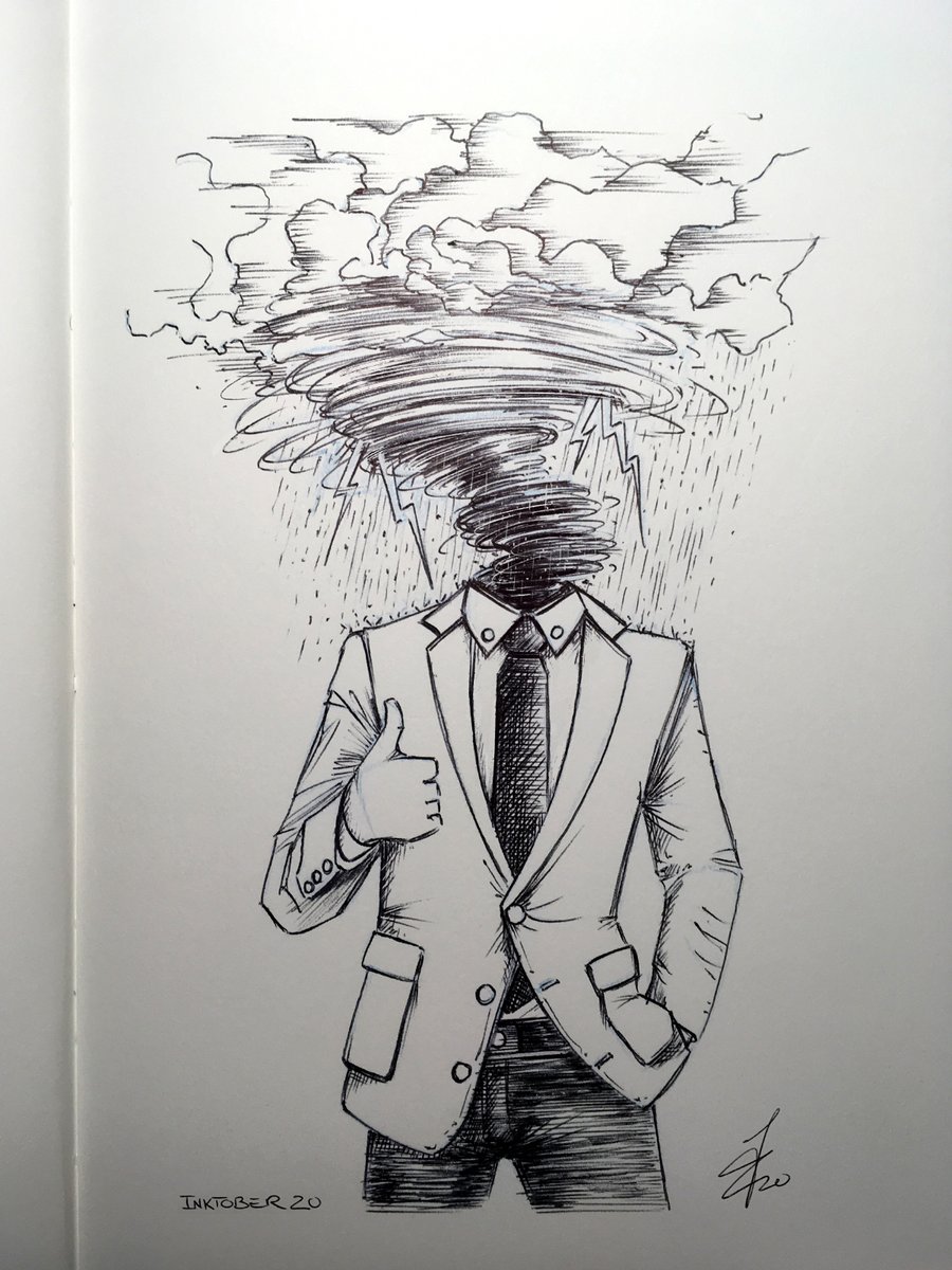 Some days we’re just like this... fine on the outside and a total mess on the inside... Humans! #inktober2020 #inktober #storm #inktoberday17