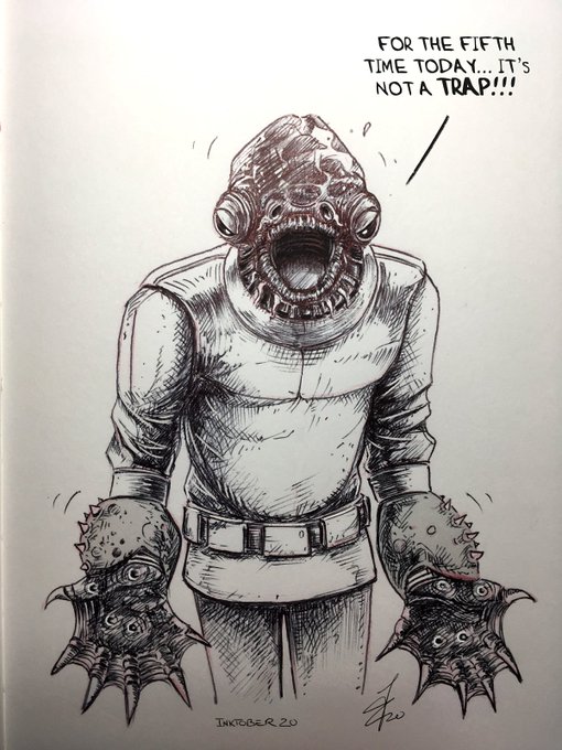 I had to go with Ackbar o this one, actually I don’t think I ever draw it before 🤔 After a while in the sketch, couldn’t stop imagining the crew mocking on the trap thing and so, here u go, a pissed admiral! #inktober2020 #inktober #trap #inktoberday18 #starwars