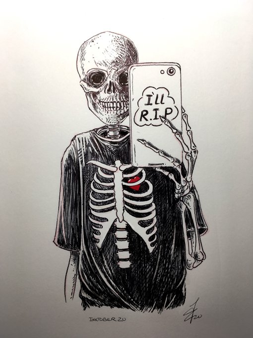 “- I will... eventually... but 1st... one more selfie!” *Still trying to catch the train... #inktober2020 #inktober #rip #inktoberday23